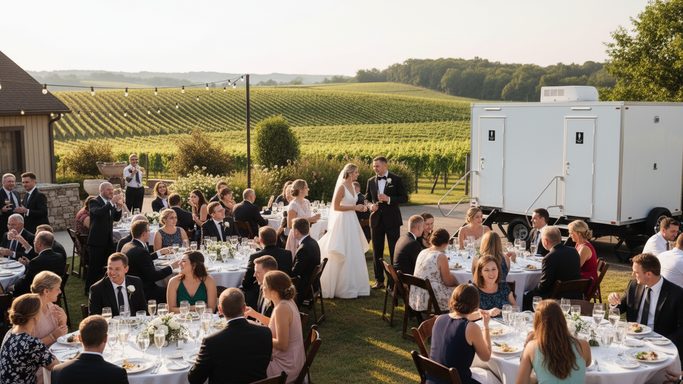 Celebrate among the vines without compromising comfort. Our luxury restroom trailers are ideal for winery weddings and vineyard venues that lack permanent facilities, offering clean, climate-controlled restrooms that blend seamlessly into your event setting.